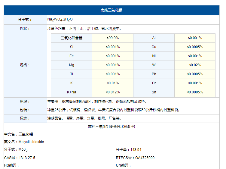 高纯三氧化钼